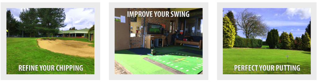 Full swing lessons are delivered in the Millennium Suite, a purpose-built, covered teaching bay at Knotty Hill. For chipping, pitching, bunker play, and putting instruction, we utilise one of the dedicated short-game practice areas.